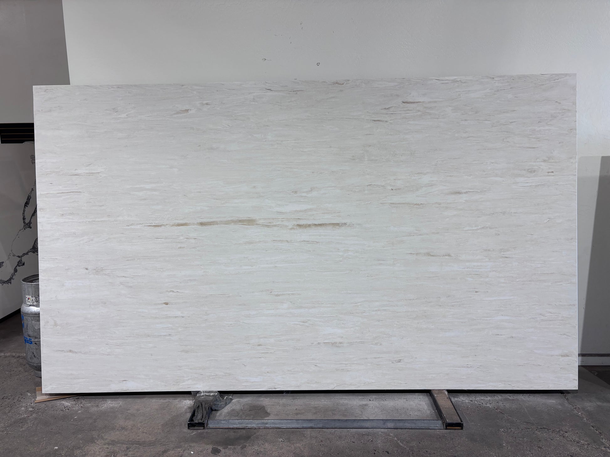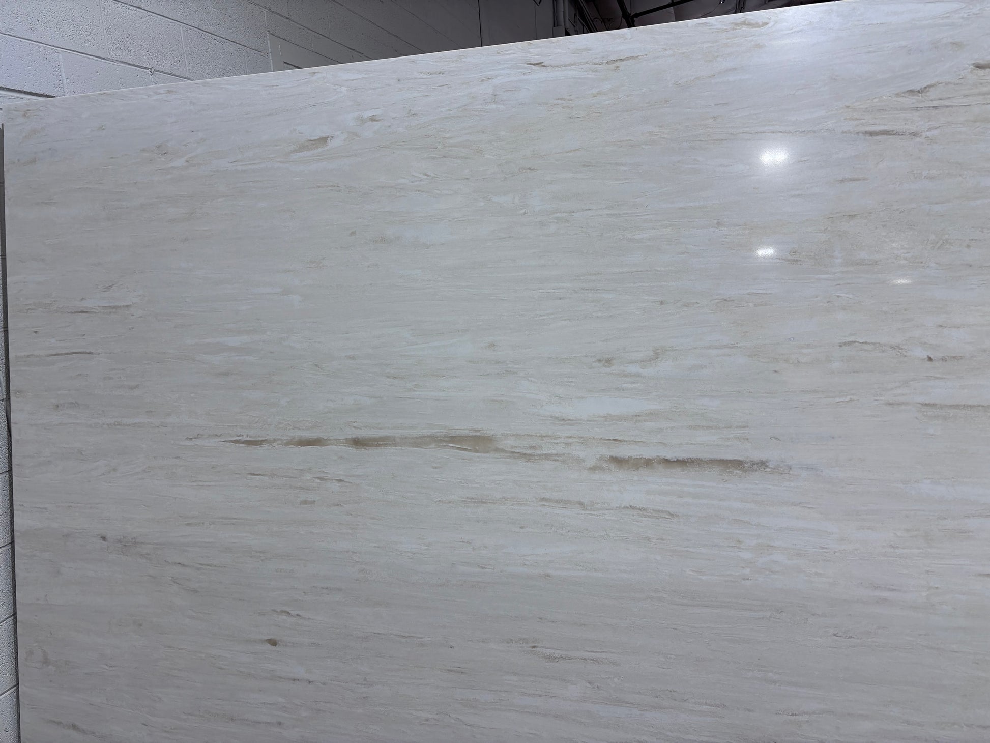Champagne drift is a beautiful brown and beige slab with linear movement. Very similar to a limestone. This is perfect for areas that have light earth tones.
