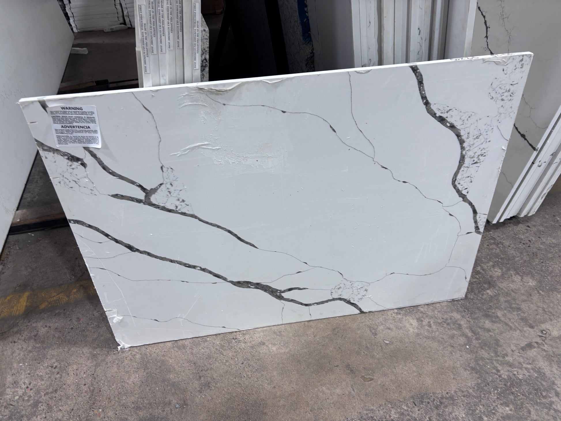 This Quartz offers an bright white background with beautiful, dark charcoal veins running through it