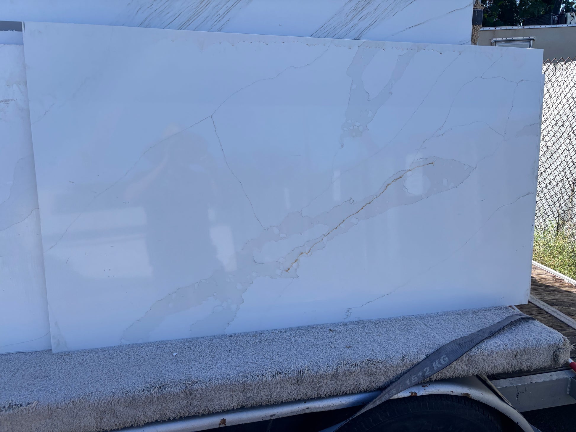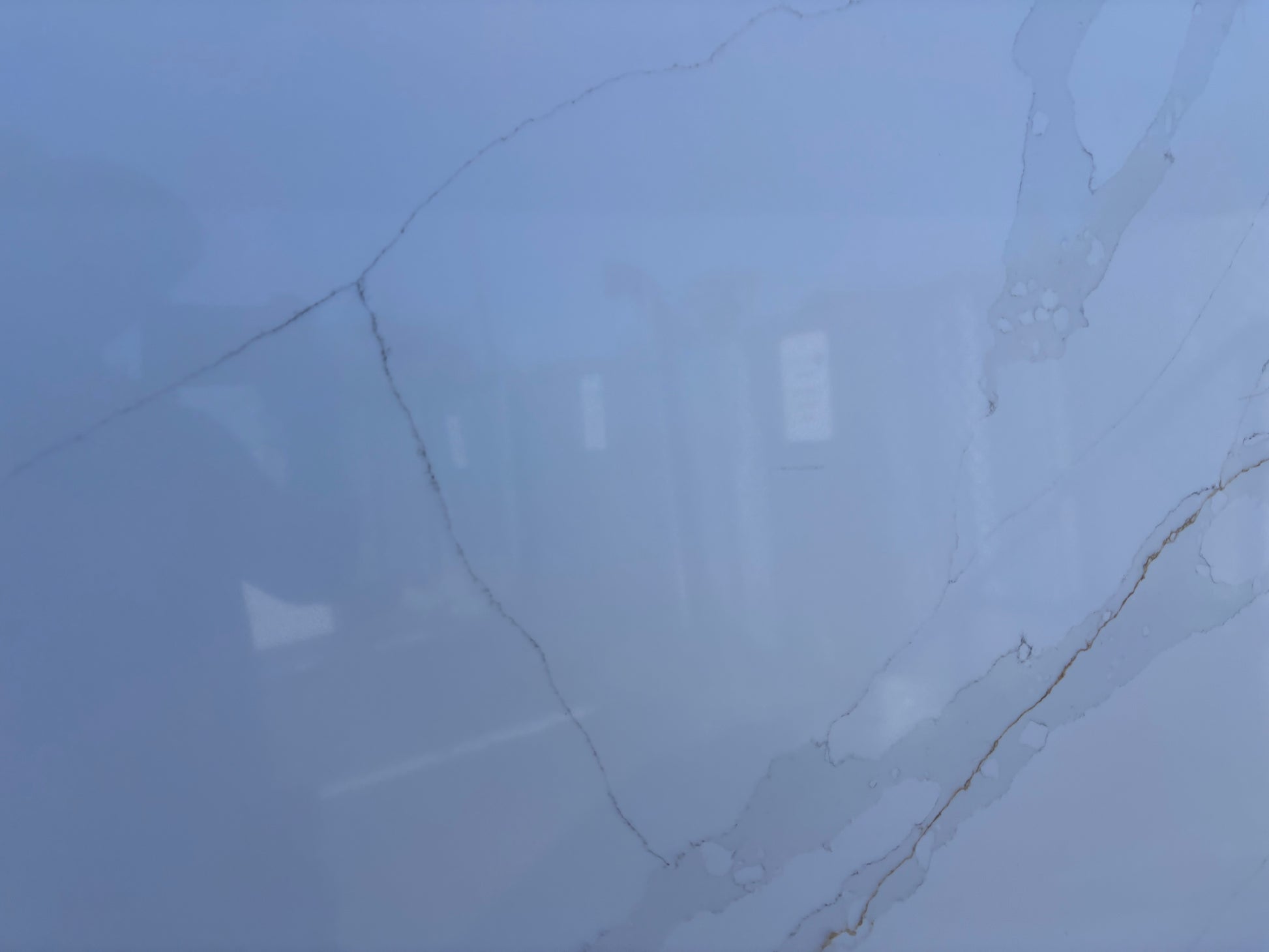 This Quartz offers an off-white background with beautiful, grey and golden veins running through it